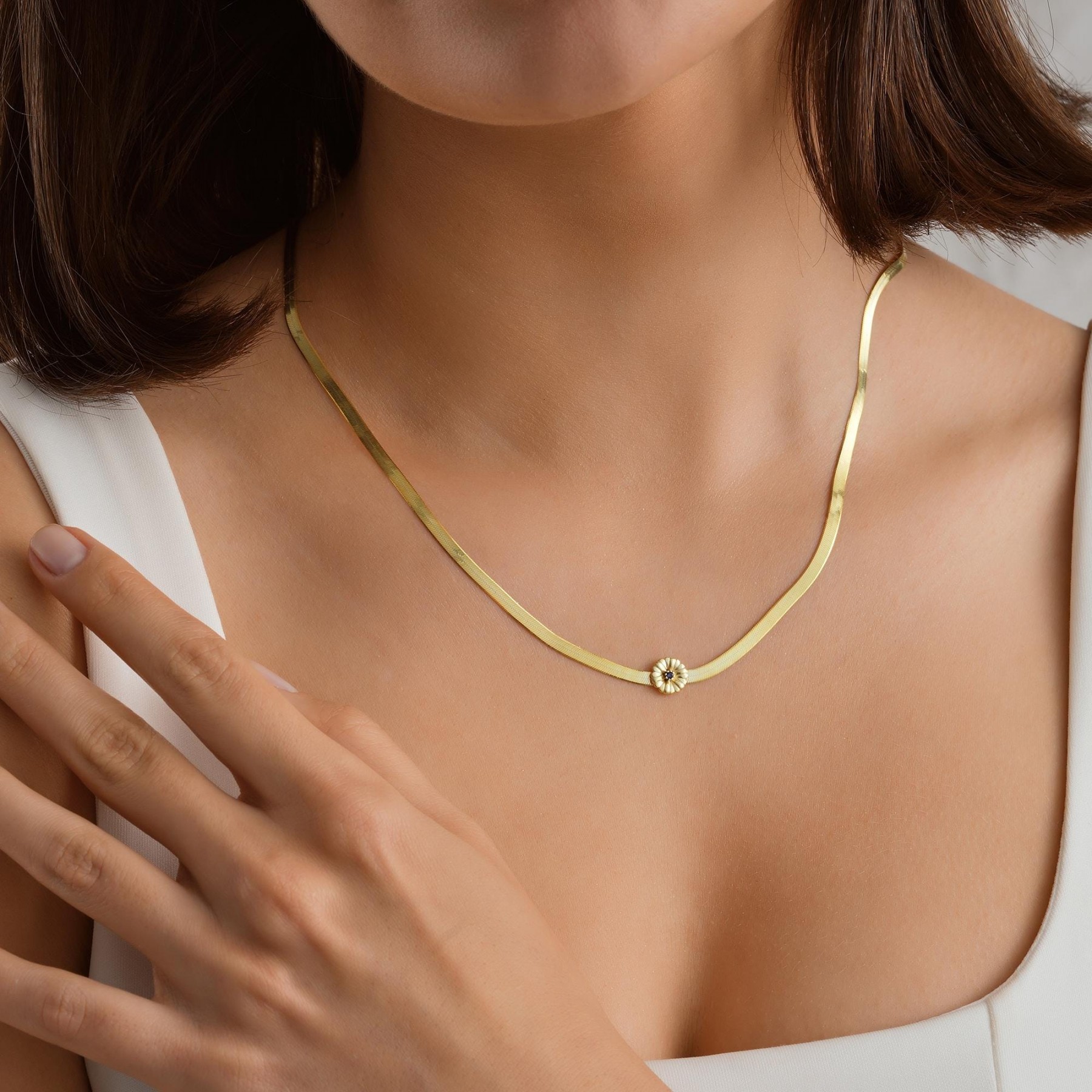 Celebrate meaningful moments with the 14K Gold Birth Flower Necklace for Her. This thoughtfully designed piece features a delicate birth flower paired with a matching birthstone, creating a unique and personal accessory that symbolizes individuality and beauty.