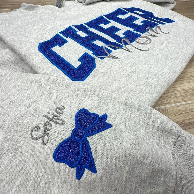 This cozy and stylish sweatshirt shines with stunning glitter embroidery that sparkles with every move, complemented by adorable glitter bows for a charming, feminine touch. Whether you’re cheering from the sidelines, attending tournaments, or running errands, it keeps you warm, confident, and proudly showing your sports mom spirit in style.