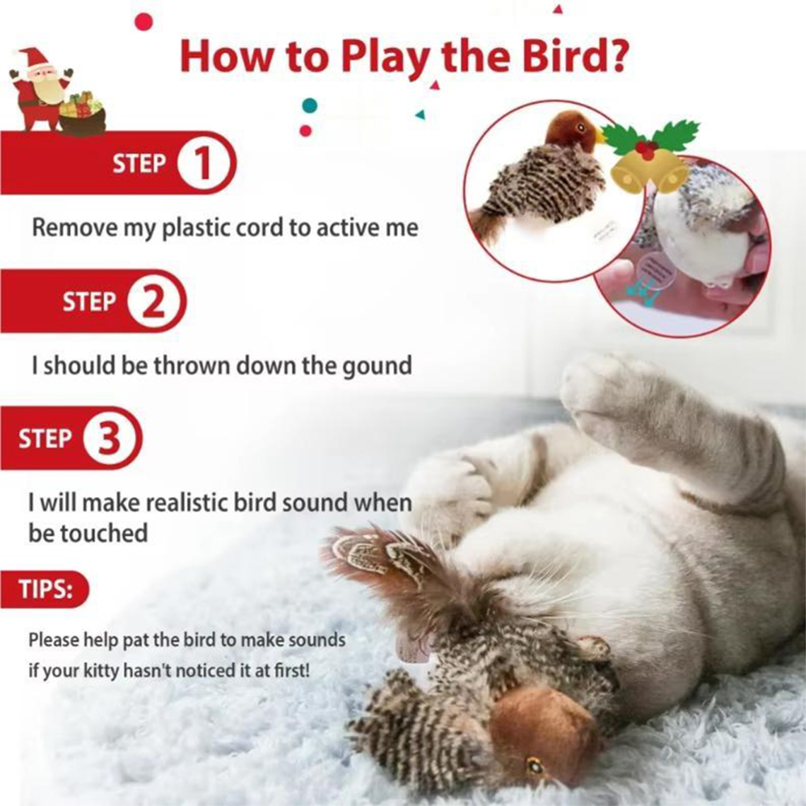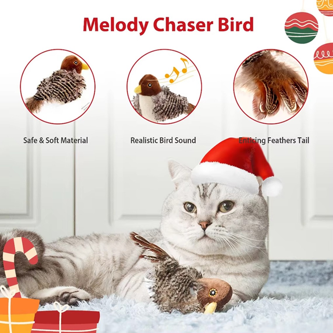 Unlike silent toys that quickly lose appeal, this electric bird toy features realistic bird chirping sounds that activate your cat’s auditory senses. The lifelike sound effects mimic real birds, making playtime more immersive and exciting.