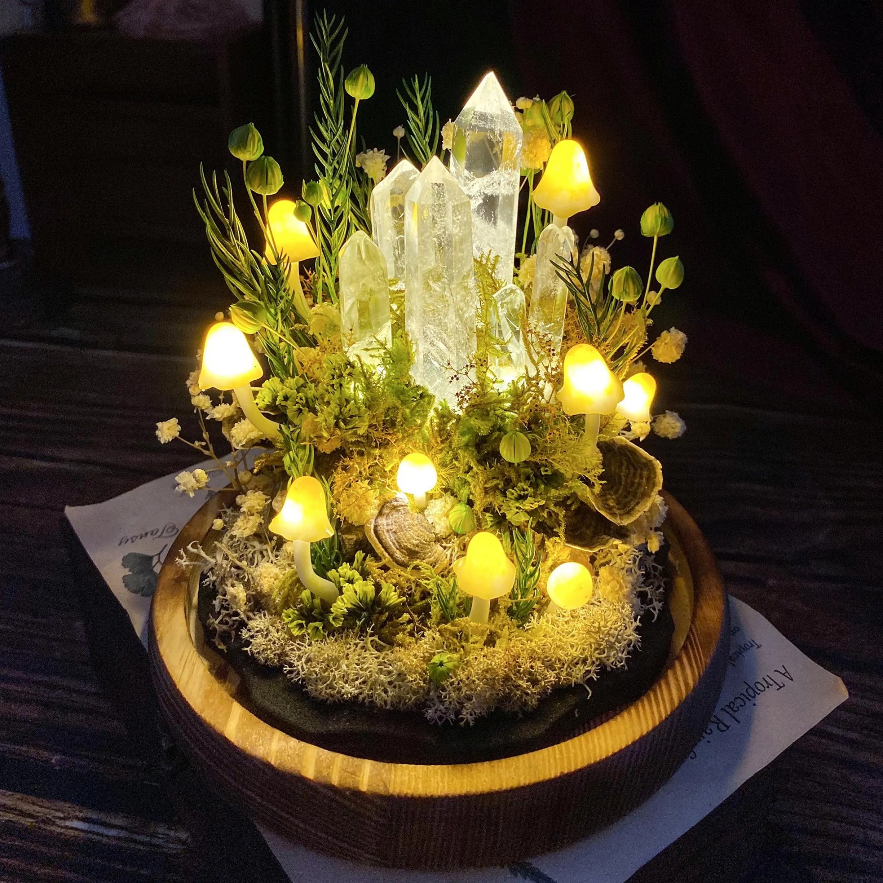 Enchanted Forest Mushroom Lamp Fantasy Crystal Nightlight Unique Home Decor