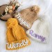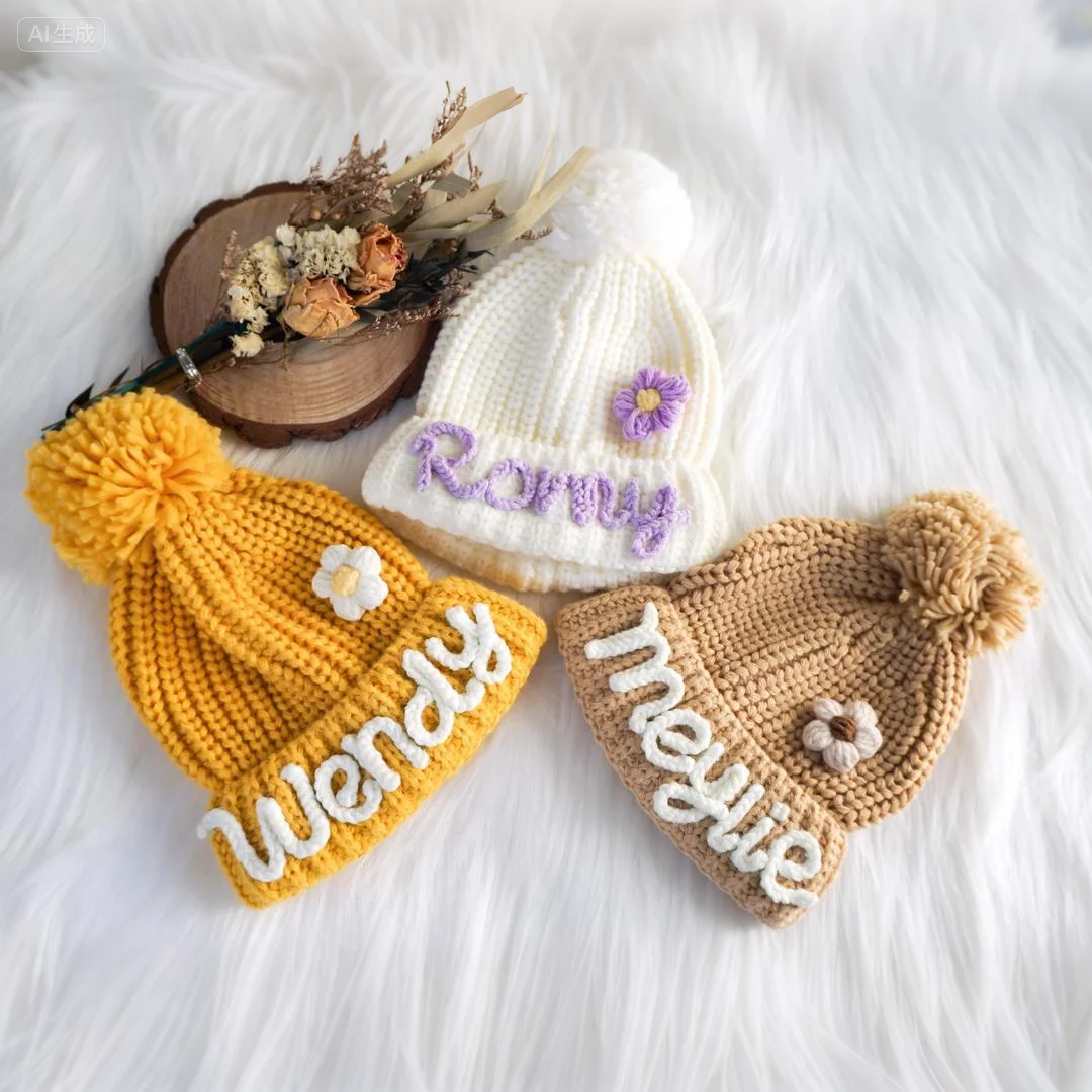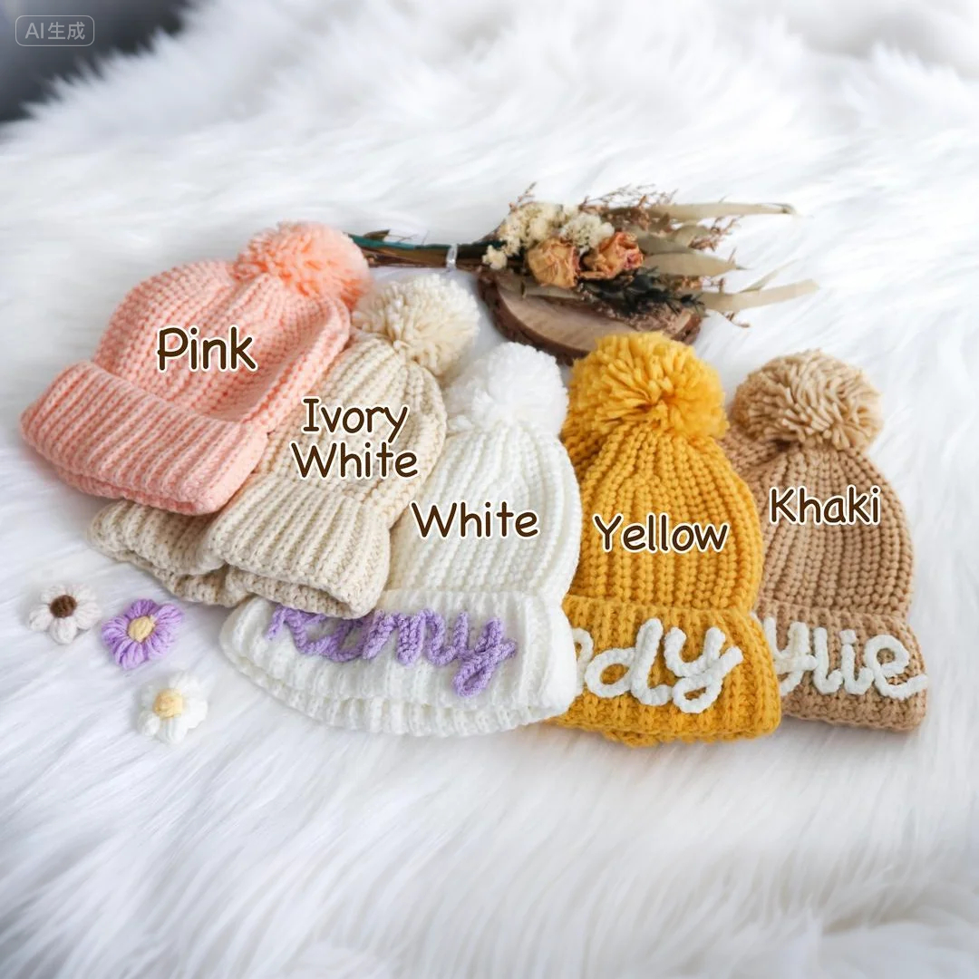 The beanie is crafted from soft knitted fabric, with your personalized name hand-stitched using the same yarn for a seamless finish.