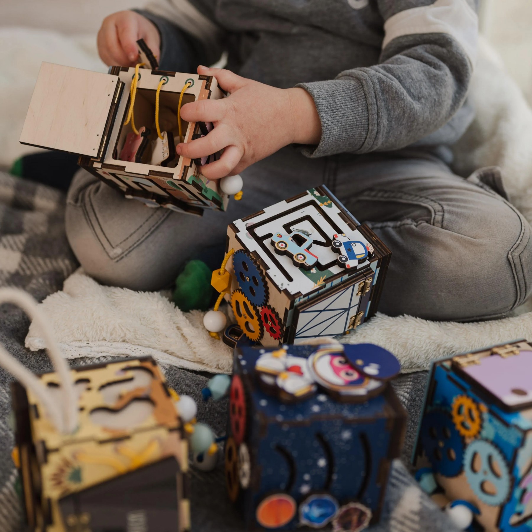 Handmade Wooden Busy Cube Educational Toys Suitable For Babies