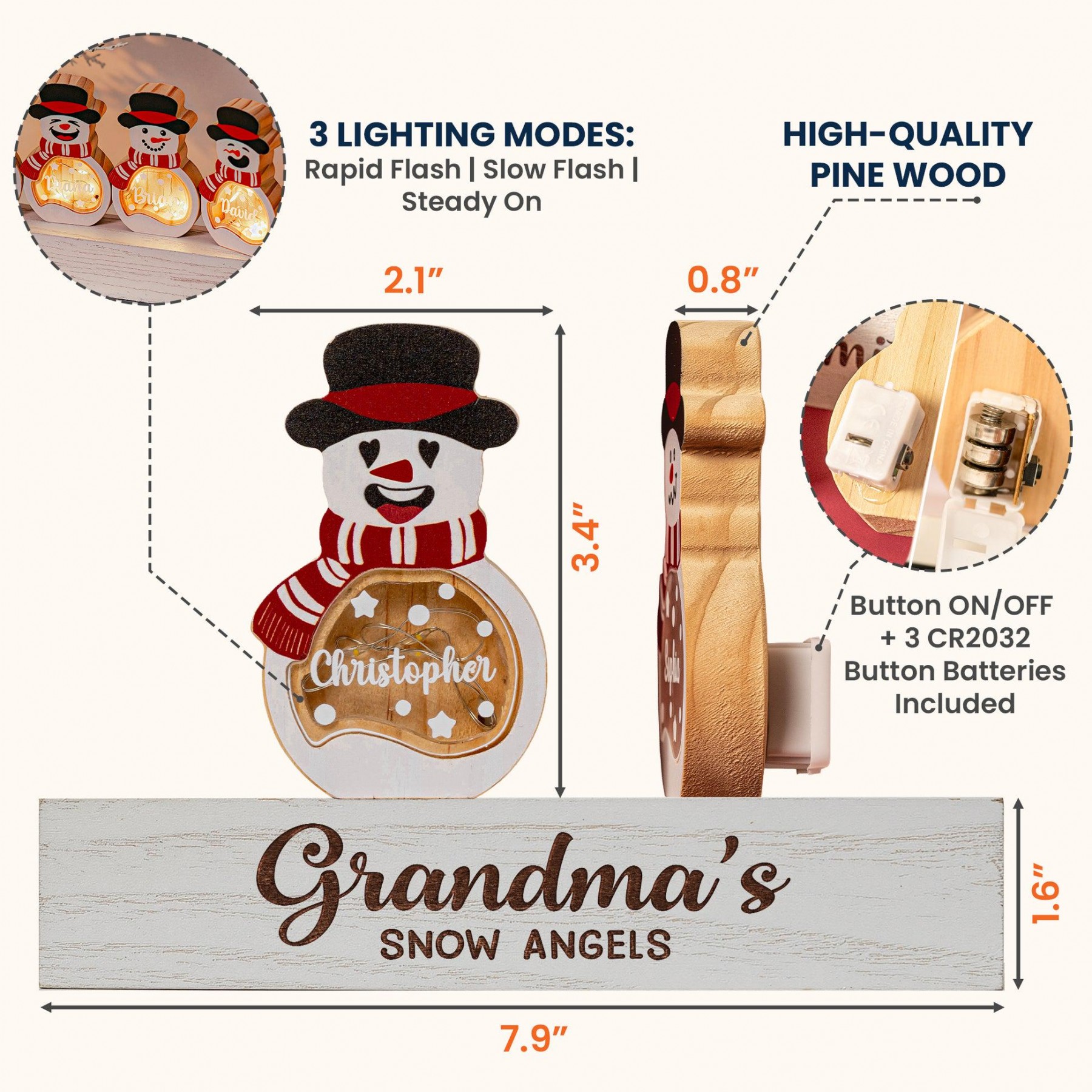 Introducing the Little Snowmen ❄️—our beautifully crafted Lighted Wooden Snowman, designed to fill every home with warmth and love. This charming, eye-catching piece reflects the heart of family togetherness, creating a unique and timeless keepsake that celebrates your special bond. Perfect for family-oriented homes, it also makes a heartfelt gift for grandma, symbolizing the glowing connection with her beloved “snow angels”—the grandkids.