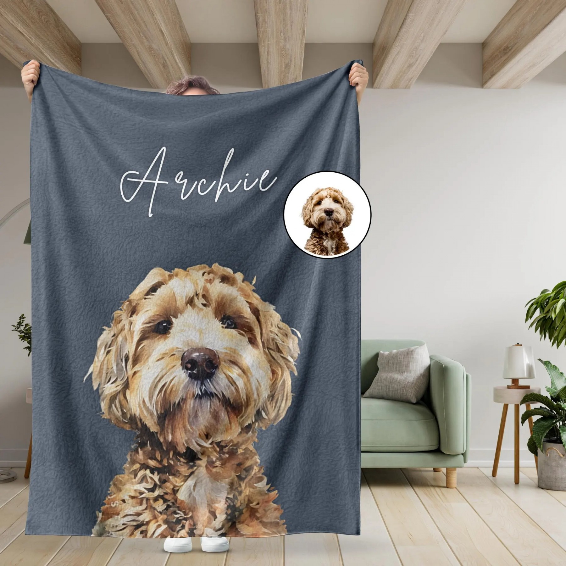 Give the gift of comfort and love with our Custom Watercolor Pet Portrait Blanket. Using your cherished pet photo, we create a soft, detailed watercolor design that makes every cuddle extra special. An unforgettable keepsake for pet lovers, perfect for holidays or any occasion.