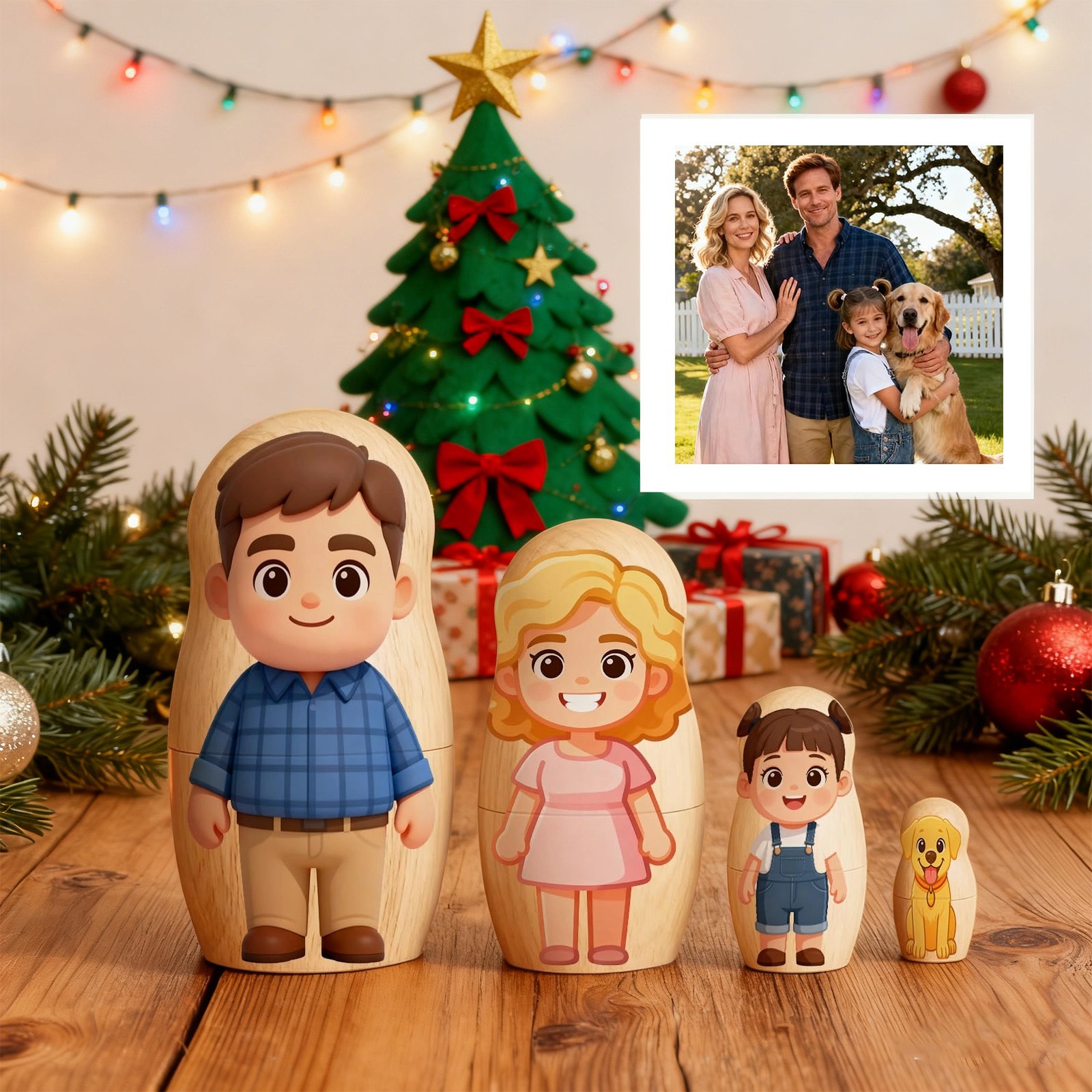 Personalized Portrait Cartoon Style Nesting Doll Best Christmas Gift for Family