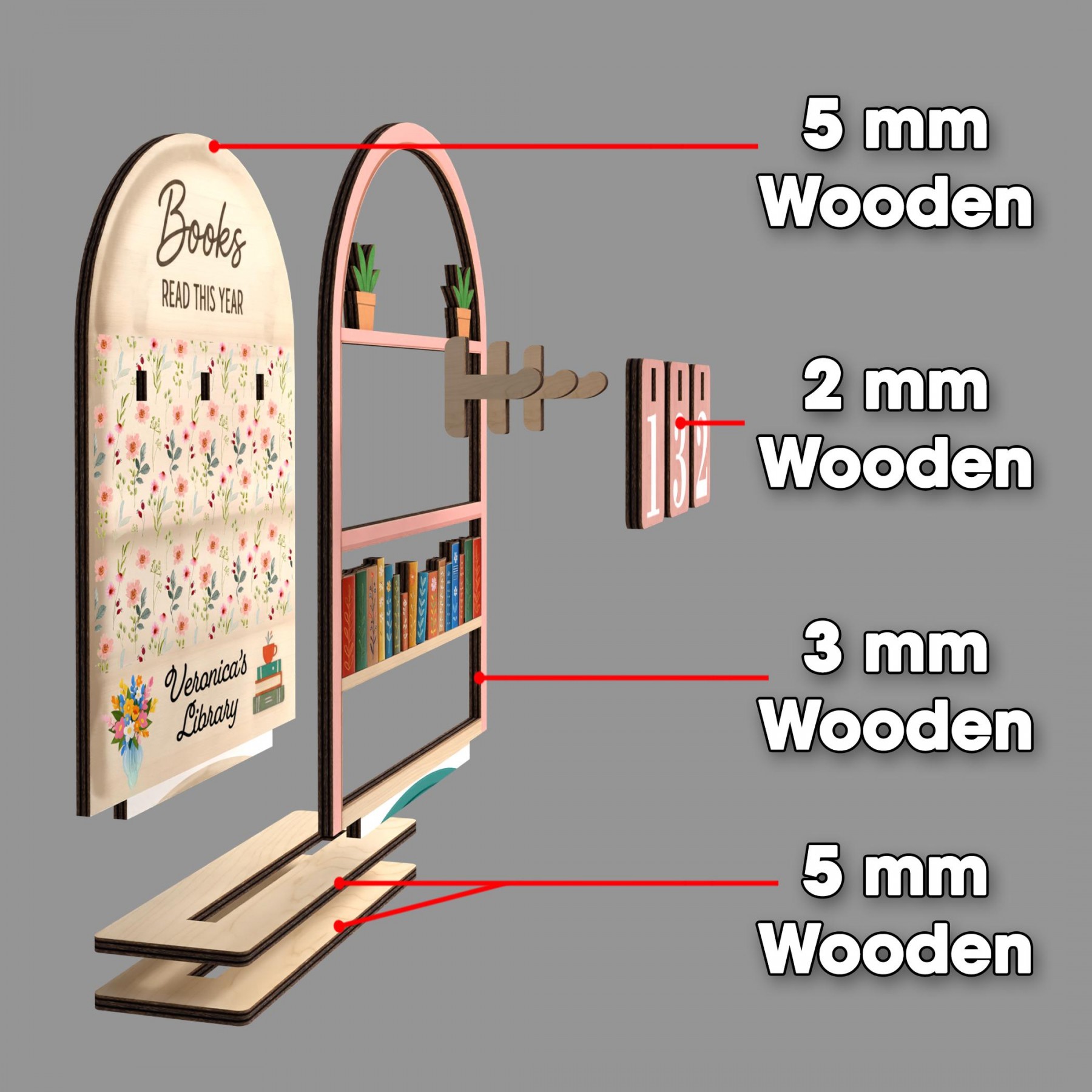 • 3 mm detailed bookshelf layer