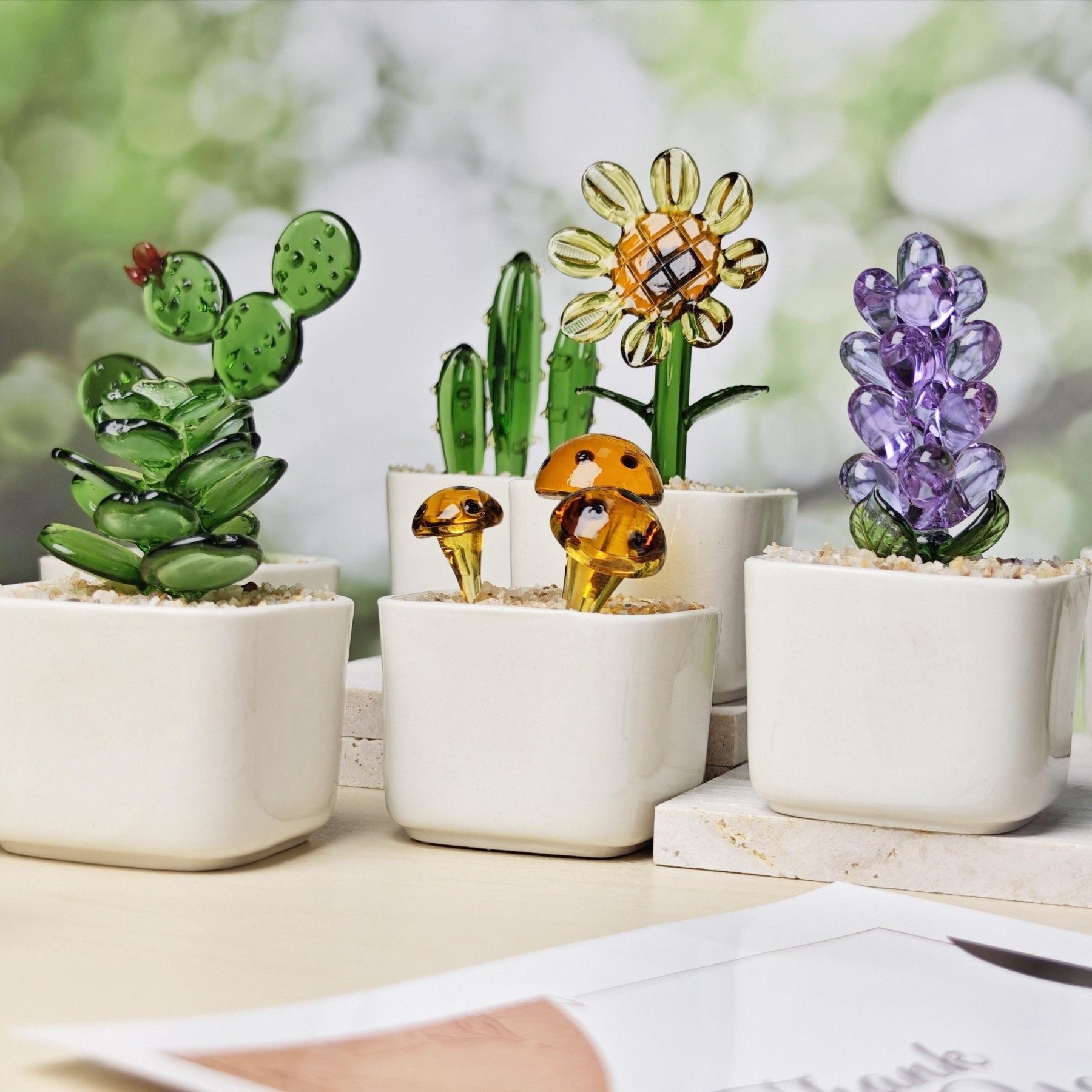 Elevate your space with our exquisite handcrafted glass potted plants, available in 9 stunning designs. Each elegant piece now comes with fully customizable text on its chic ceramic pot — making it truly your own.
