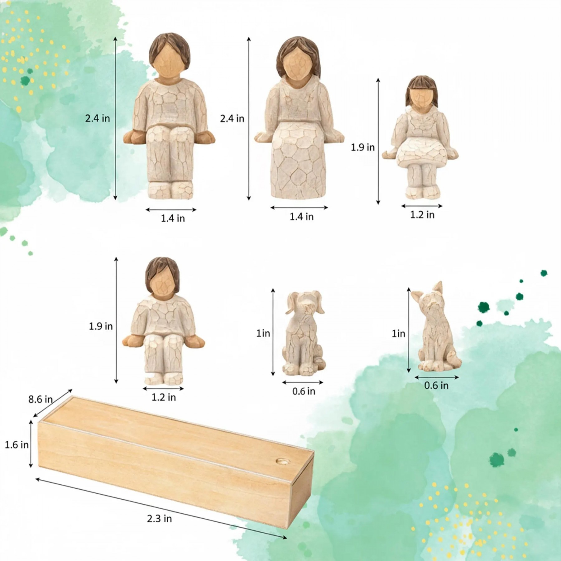 Celebrate love, family, and togetherness with this customizable resin figurine set. Each set includes a smooth wooden base and finely detailed resin figurines that you can arrange freely to tell your family’s unique story.